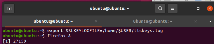 This commands will work for this terminal session only. Once the terminal session windows is closed, the TLS keys will not be stored in the log file anymore. The storage of these keys applies to TLS keys of this process and all processes spawned from it only. this means that after running the command, if you start your browser from the GUI, the keys will not be stored. You need to start the browser from within the commands line. Before you do that, start capturing the traffic in Wireshark.